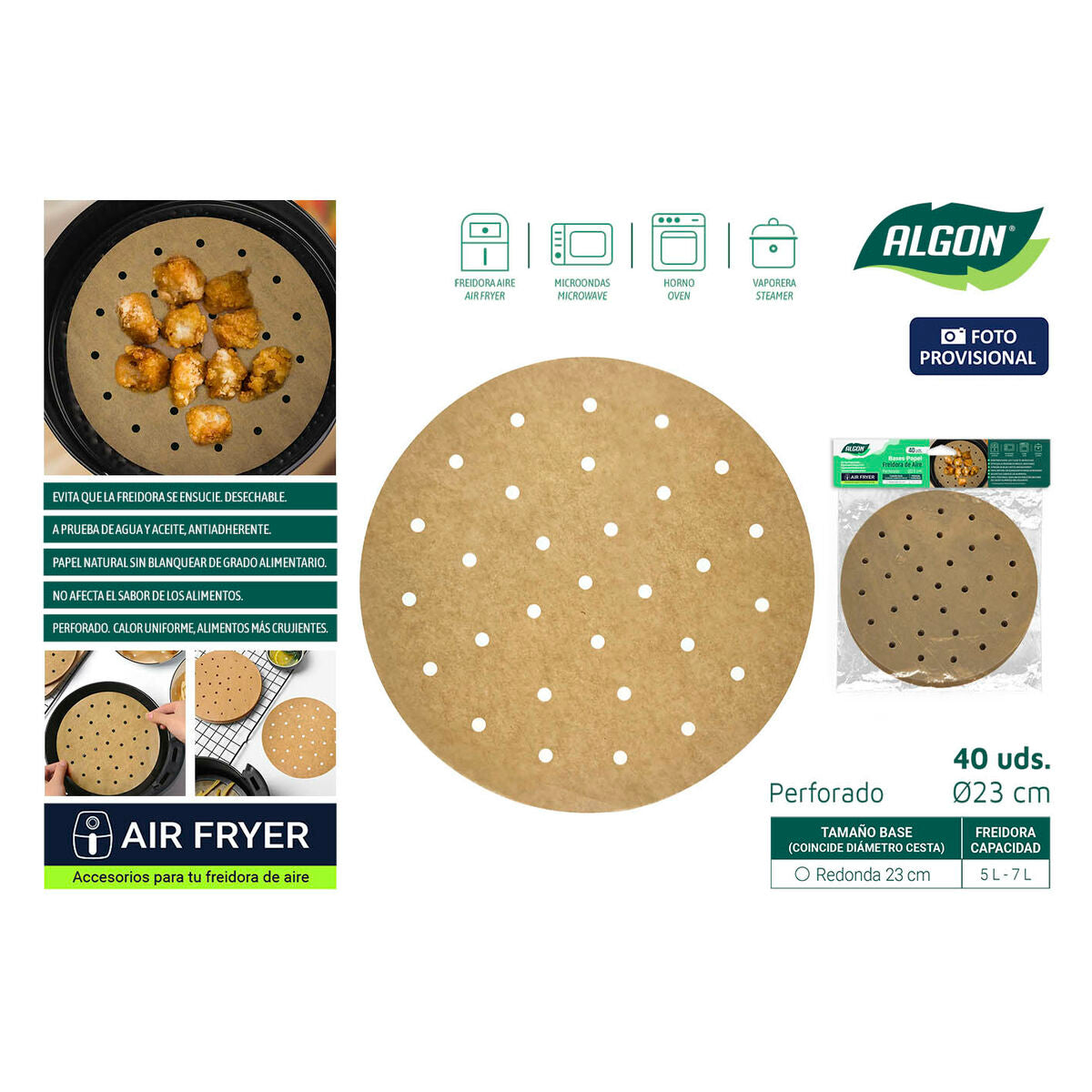 Papier für Heißluftfritteuse Inde 23 cm (24 Stück)
