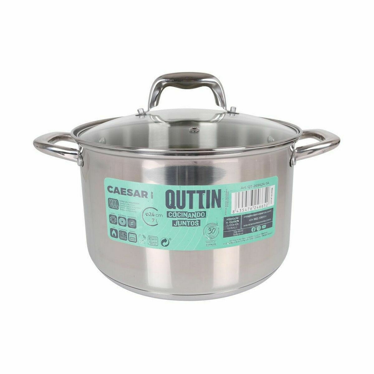 Topf mit Glasabdeckung Quttin Caesar Stahl ø 24 x 15,5 cm (4 Stück)