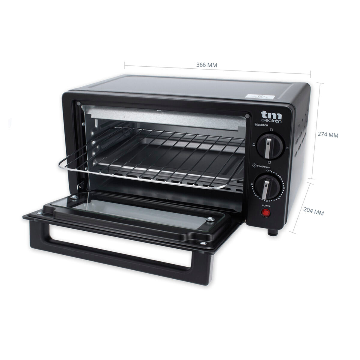 Le mini four électrique TM Electron est un appareil compact et polyvalent conçu pour un usage domestique et les espaces réduits, avec une capacité de 10 litres permettant de cuire ou griller de petites portions efficacement. Il présente un design élégant en noir qui s’adapte à toutes les cuisines, et est conçu pour offrir un grand confort d’utilisation grâce à sa porte en verre double, facilitant la visualisation des aliments sans ouvrir le four. Cet appareil fonctionne sur alimentation secteur et dispose d’une puissance réglable de 400W à 800W, supportant une température maximale de 230ºC. Son minuteur est réglable jusqu’à 60 minutes et comprend un signal sonore, permettant un contrôle précis du temps de cuisson. Le mini four combine les fonctions de four et grill grâce à ses éléments chauffants en quartz double, assurant un chauffage rapide et uniforme avec ses trois modes disponibles. Il inclut des accessoires tels qu’une plaque en aluminium pour cuisson et une grille chromée, accompagnées d’une poignée facilitant la manipulation et le retrait des pièces. Son plateau inférieur amovible facilite le nettoyage, garantissant un entretien simple et pratique. Le mini four est équipé d’un témoin lumineux de puissance et présente des dimensions compactes de 366 mm x 274 mm x 204 mm, idéales pour les plans de travail aux espaces limités. Il fonctionne sous une tension standard de 220-240V, 50/60Hz, compatible avec la plupart des installations domestiques. Cet appareil convient à ceux qui recherchent un électroménager pratique, facile à nettoyer et efficace pour griller et cuire en petites quantités, alliant qualité et fonctionnalité dans un format réduit.