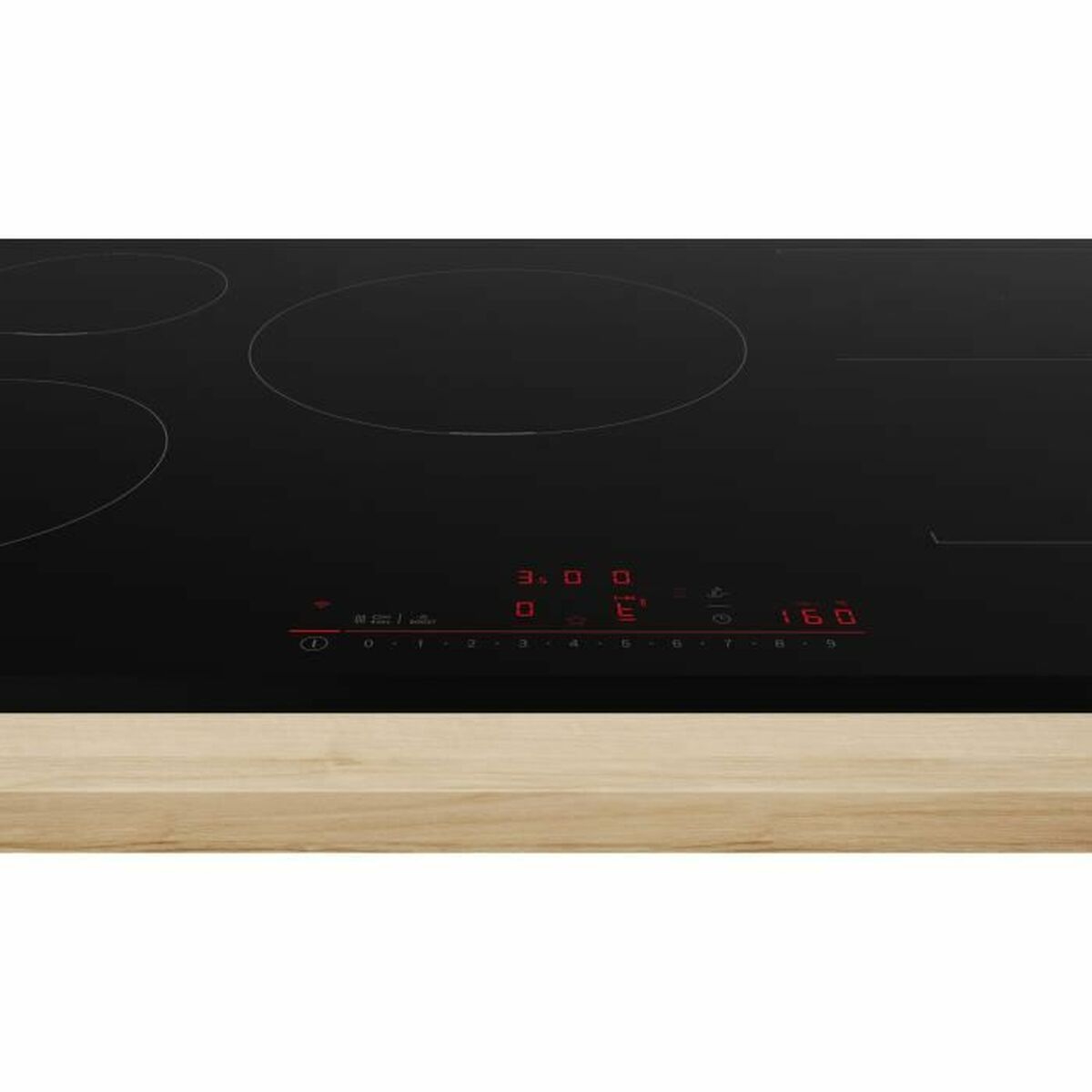 The BOSCH induction hob stands out as a modern and efficient appliance designed to offer an advanced and safe cooking experience. This built-in model features an elegant black surface with a spacious layout that includes five burners arranged on a rectangular surface measuring approximately 80 cm long by 52 cm deep, allowing you to cook multiple dishes simultaneously with great convenience. It uses induction technology, which heats the cookware directly, achieving fast and precise cooking while optimizing energy consumption. Among its features is a timer, ideal for setting cooking times to prevent food from overcooking or burning, enhancing safety and convenience during use. It also includes a child lock system that prevents accidental operation, providing peace of mind in homes with children. Its design combines rectangular and round elements in the cooking zones, offering versatility for utensils of different sizes and shapes. The hob is designed for integrated installation into the countertop, ensuring a clean and seamless finish that improves kitchen aesthetics. The combination of these features positions this BOSCH hob as a suitable solution for those seeking a balance of technological functionality, safety, and understated style in their kitchen.